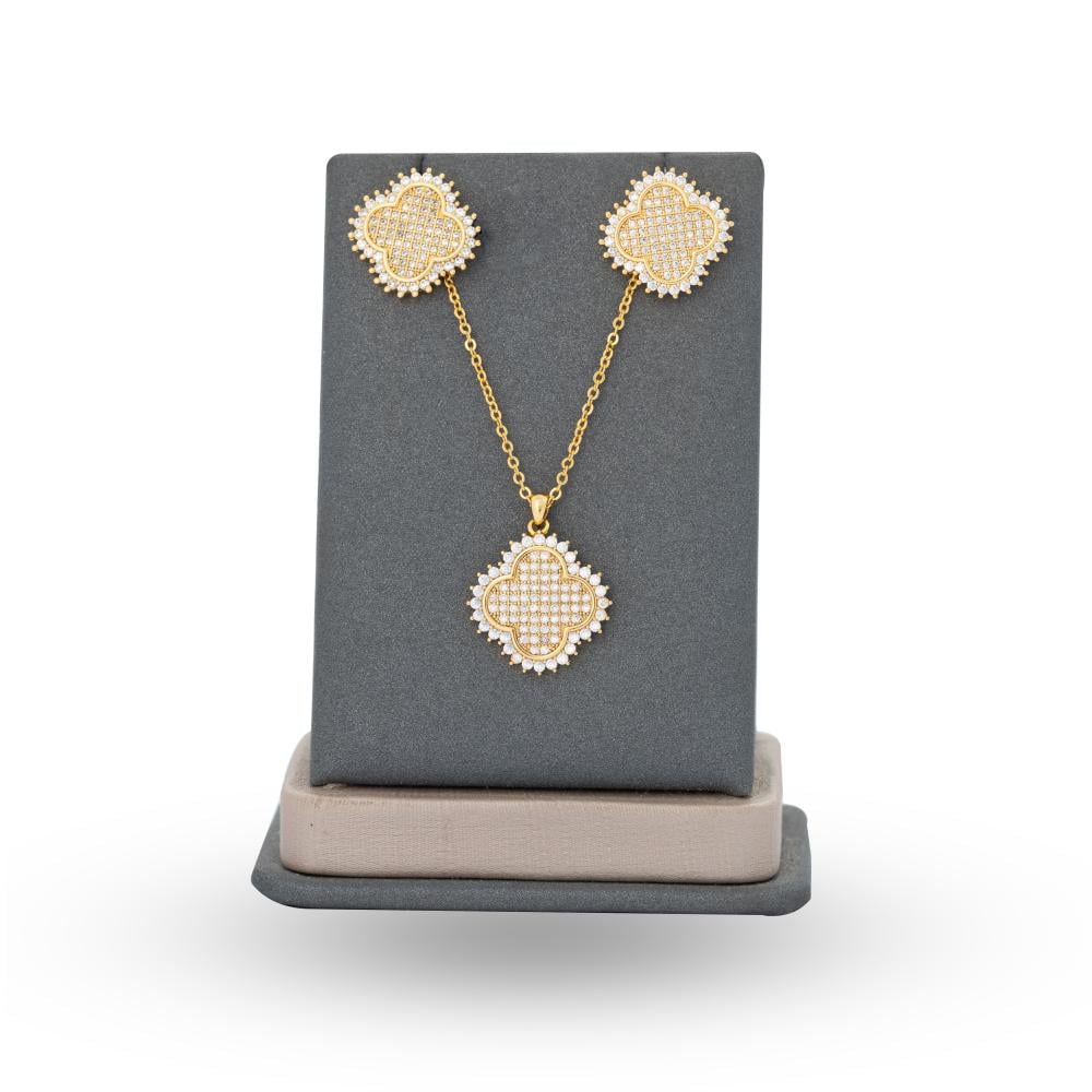 تعليقة مع حلق زركون ذهبي من ماركة فايلت، مصممة بعناية لتمنحك إطلالة أنيقة وفاخرة. تتميز بتصميمها الفريد الذي يجمع بين الجمال الكلاسيكي والعصري، مما يجعلها الاختيار المثالي للمناسبات الخاصة أو لإضافة لمسة من الفخامة لإطلالتك اليومية.