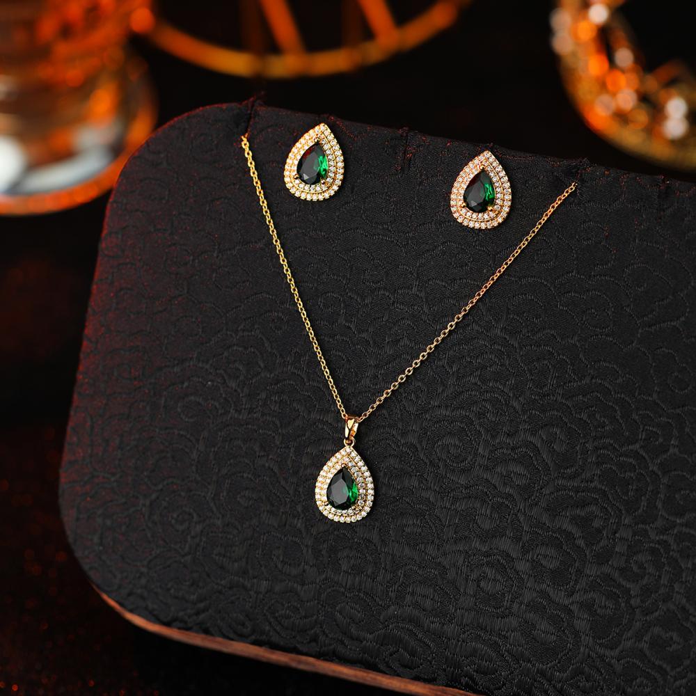 تعليقة مع حلق زركون ذهبي فص أخضر من فايلت