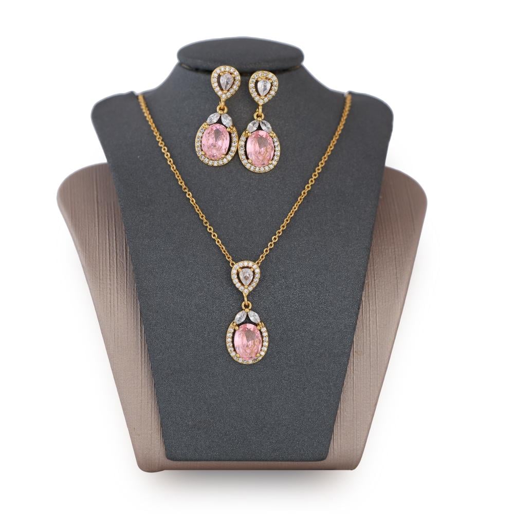 تألقي بإطلالة فخمة تنبض بالأنوثة مع طقم الزركون الذهبي من فايلت، بتصميمه الملكي المرصّع بفص وردي ساحر يعبّر عن الرقي والجاذبية. قطعة تُضفي لمسة راقية على مظهرك في كل مناسبة خاصة.