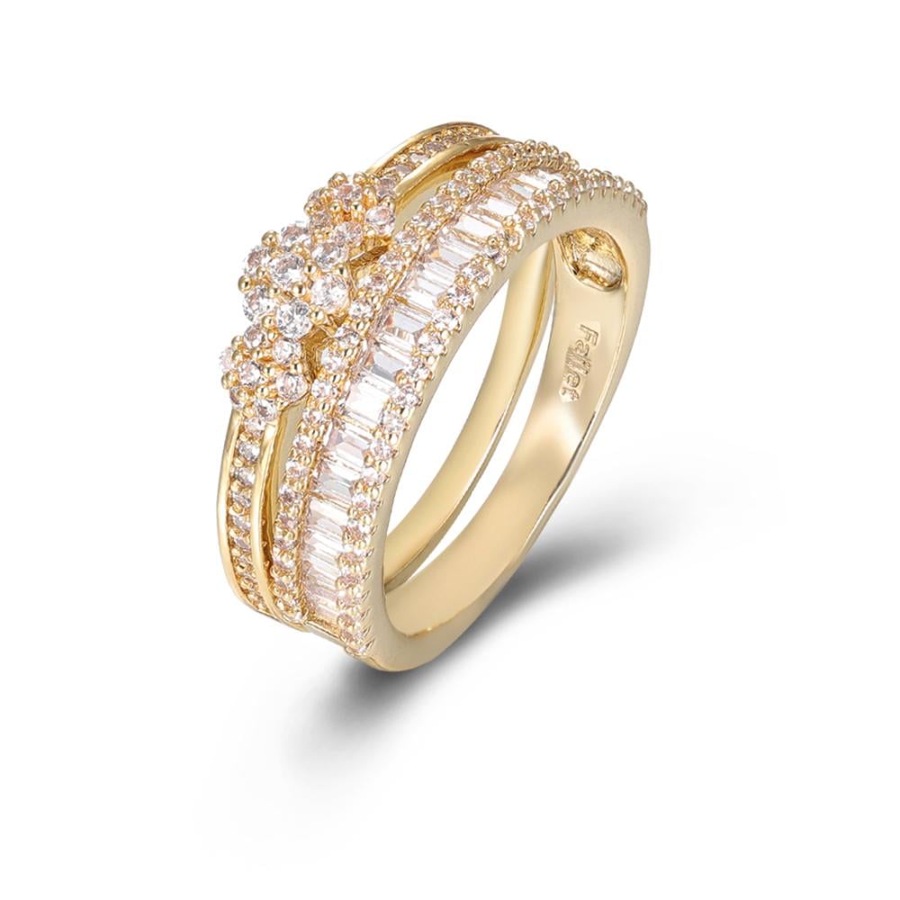 تميّزي مع خاتم فايلت الذهبي المرصع بأحجار الزركون اللامعة، تصميم يجمع بين الفخامة والبساطة ليضفي لمسة راقية وأنيقة على إطلالتك اليومية والمناسبات الخاصة.