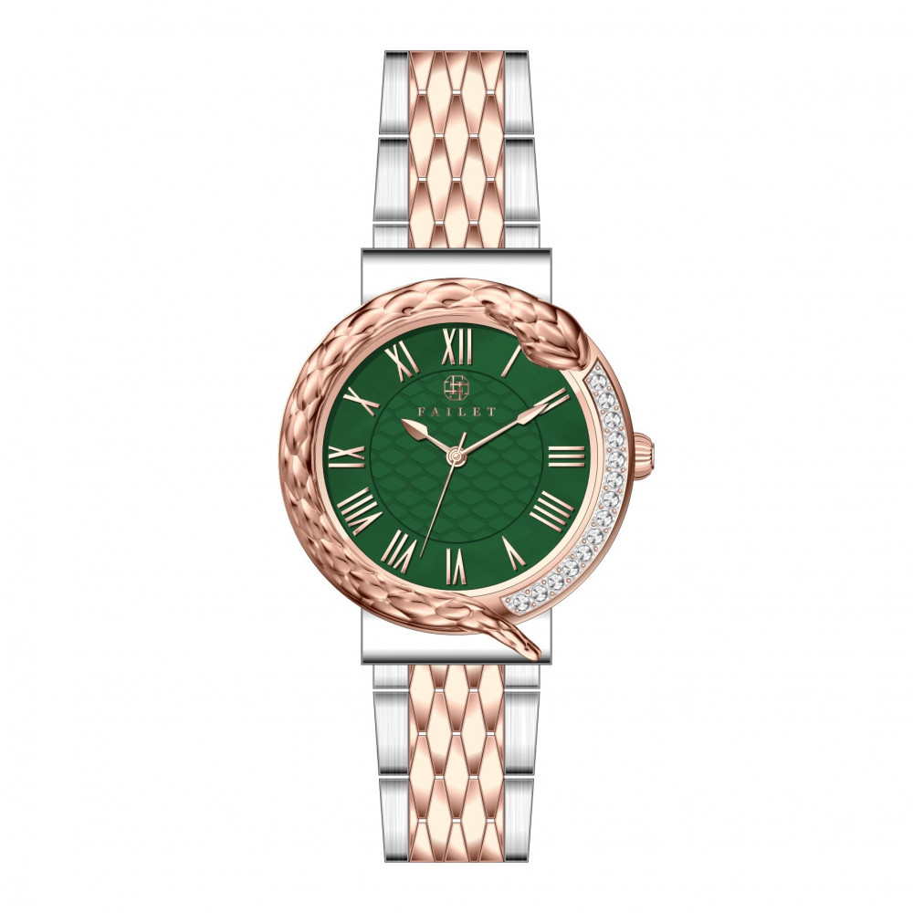 ساعة نسائية فضي نحاسي مينا أخضر ماركة فايلت