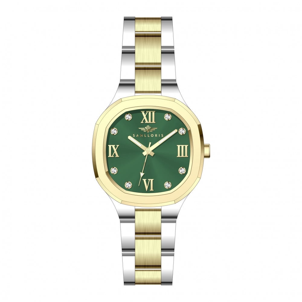 ساعة نسائية فضي ذهبي مينا أخضر ماركة سان لوريس