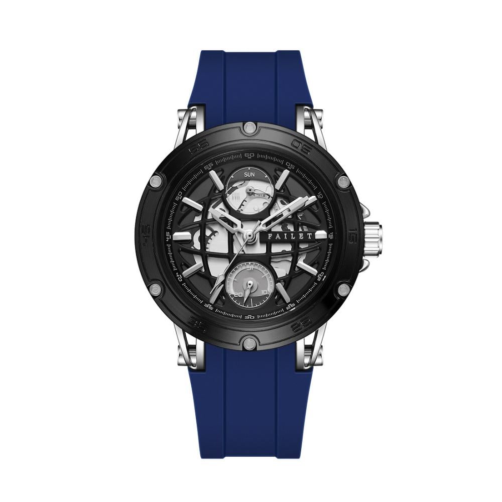 ساعة رجالية ربل كحلي بميناء أسود من فايلت، تنسيق لوني جذاب يجمع بين البساطة والقوة، تمنحك حضورًا عصريًا في كل تفاصيل يومك.