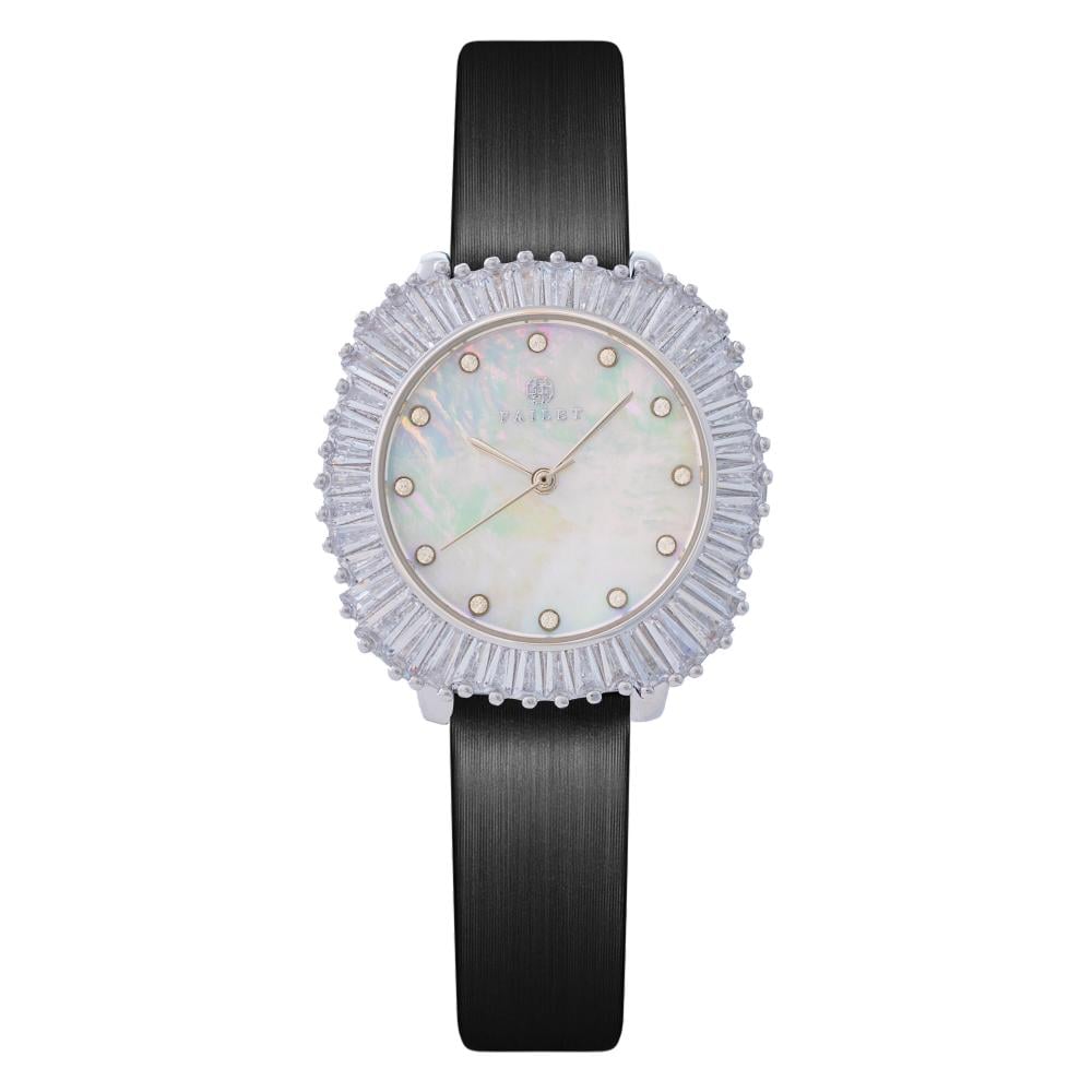 ساعة زركون فضي جلد أسود ماركة فايلت