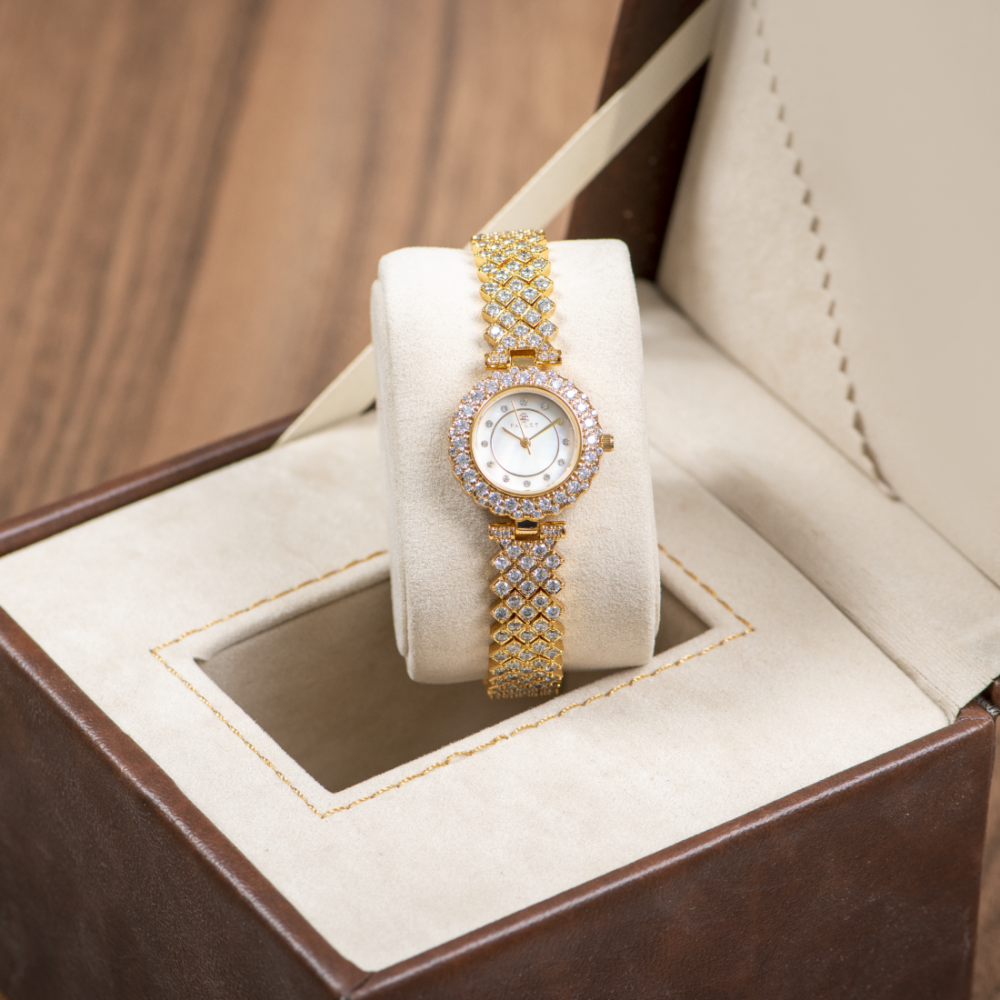 ساعة زركون نسائية ذهبي من ماركة فايلت