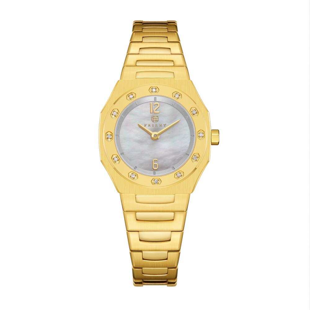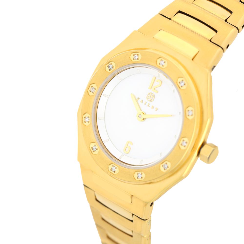 ساعة نسائية ألماس ذهبي مينا أبيض ماركة فايلت