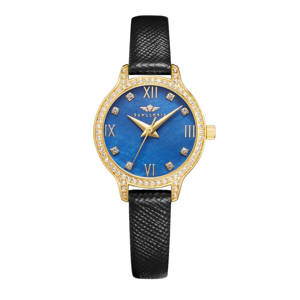 ساعة نسائية جلد أسود ذهبي مينا كحلي من ماركة سان لوريس