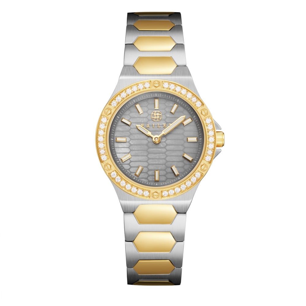 ساعة نسائية فضي ذهبي مينا رمادي من ماركة فايلت