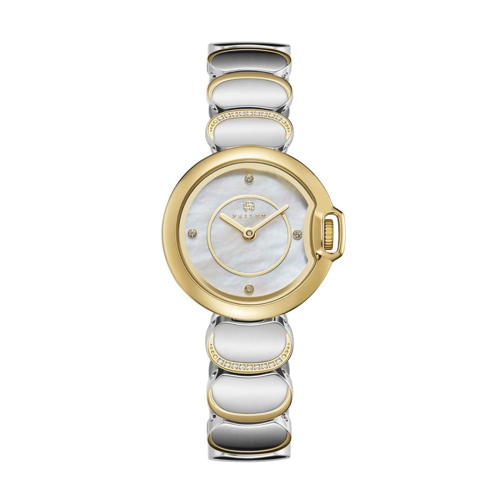 أضيفي لمسة من الأناقة العصرية إلى إطلالتك مع ساعة فايلت النسائية. يمزج هذا التصميم الفريد بين بريق اللونين الفضي والذهبي بتناغم مثالي، ويبرز جماله ميناء باللون الكحلي الغني الذي يضفي لمسة من العمق والجاذبية.