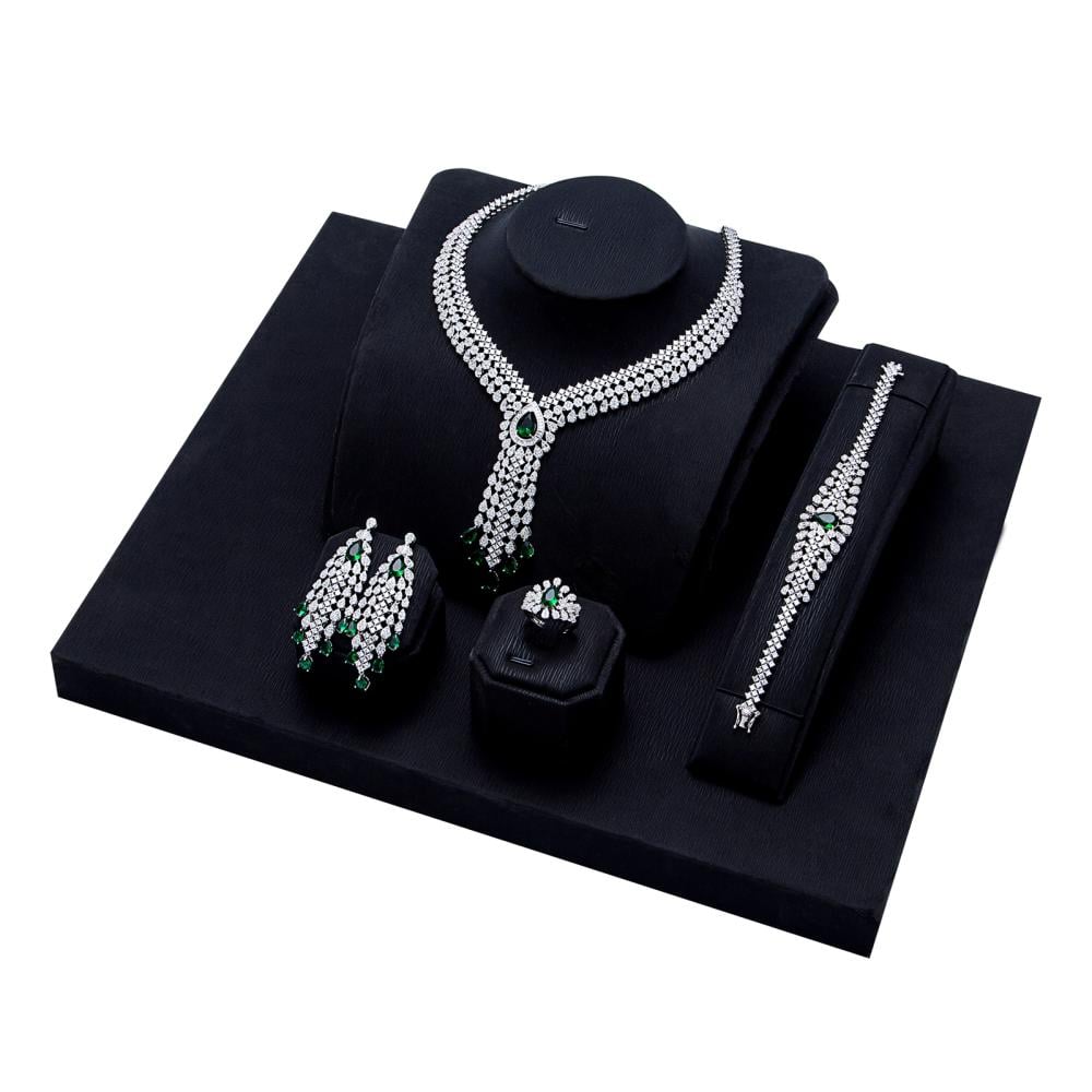 طقم زركون فضي فص أخضر من ماركة فايلت