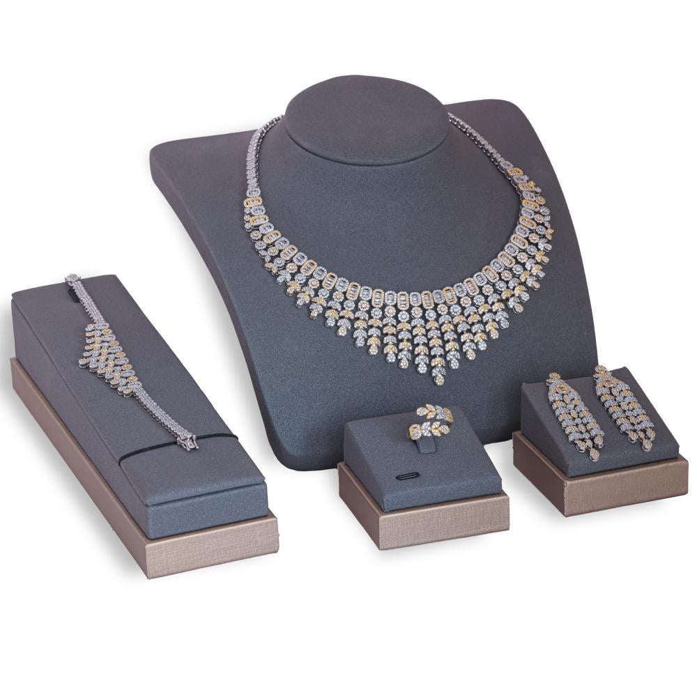 - النوع: طقم نسائي فاخر (سلسال + حلق + خاتم + إسوارة)