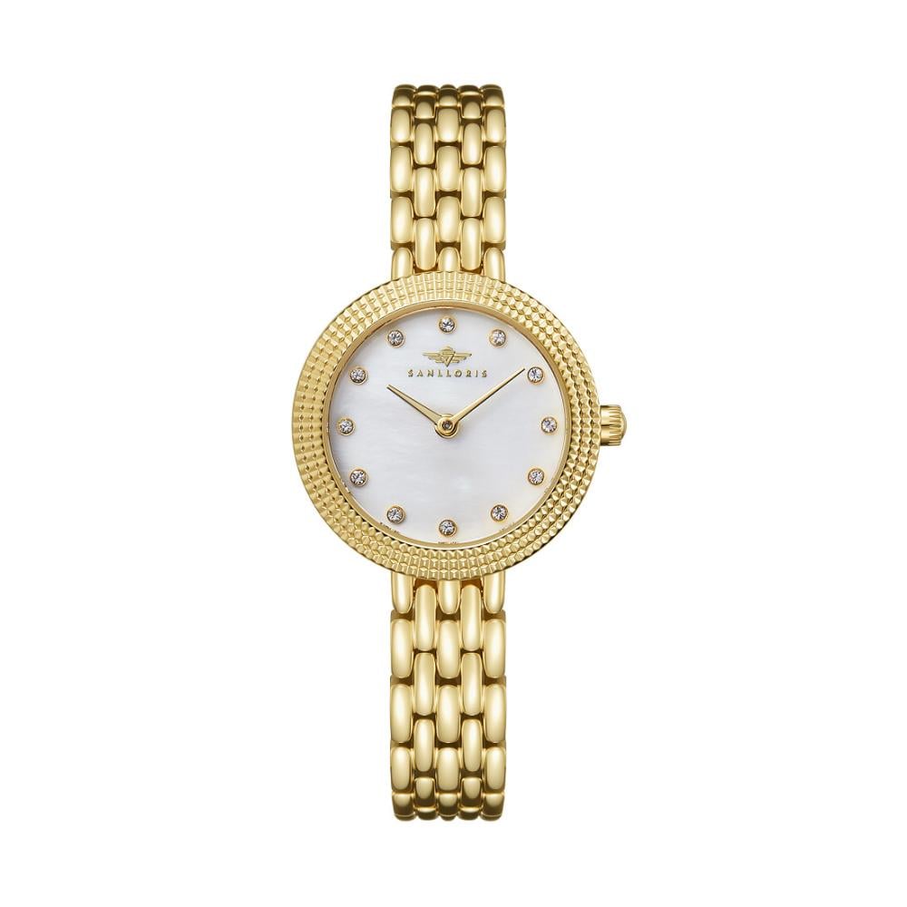 ساعة نسائية ذهبي مينا ابيض ماركة سان لوريس