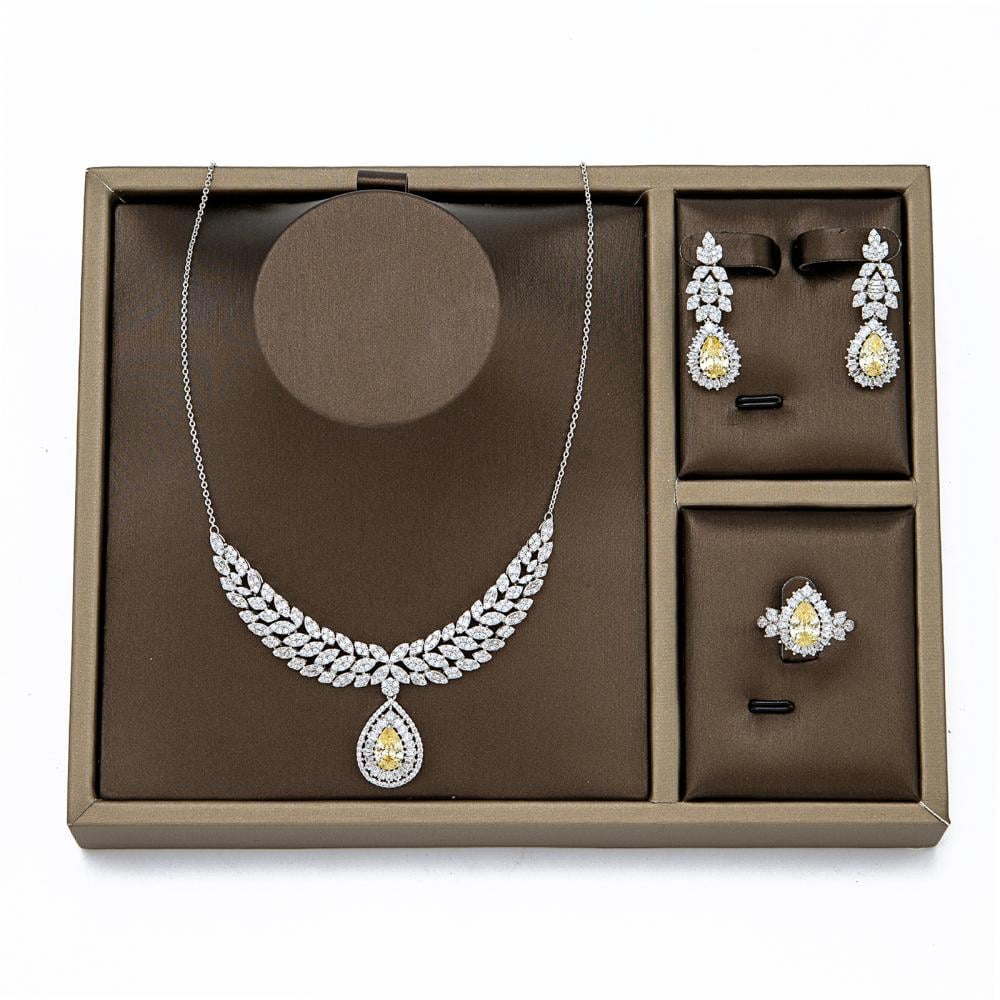 أضيفي لمسة من التميّز والفخامة إلى إطلالتك مع نص طقم زركون فضي بفص أصفر من فايلت. يتميز الطقم بتصميمه الأنيق وأحجار الزركون اللامعة التي تتناغم مع الفص الأصفر الجذاب، ليمنحك مظهرًا أنثويًا متألقًا يناسب جميع المناسبات.